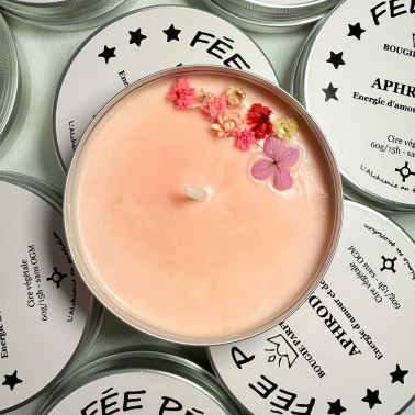 La touche Alchimique (Rose et Quartz rose) en fait une bougie qui vibre l'amour et la douceur.